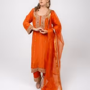 Orange Gold Hand Embroidered Suit Set | CoutureCraze
