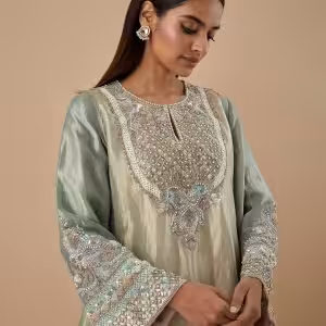 Mint Green Embroidered Kurta Set | CoutureCraze