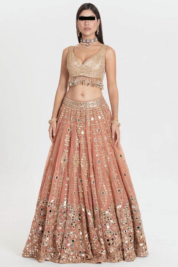 Blush Peach Net Sequins Embroidered Lehenga Set