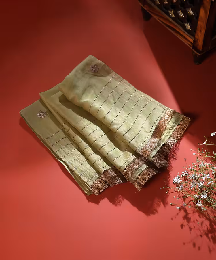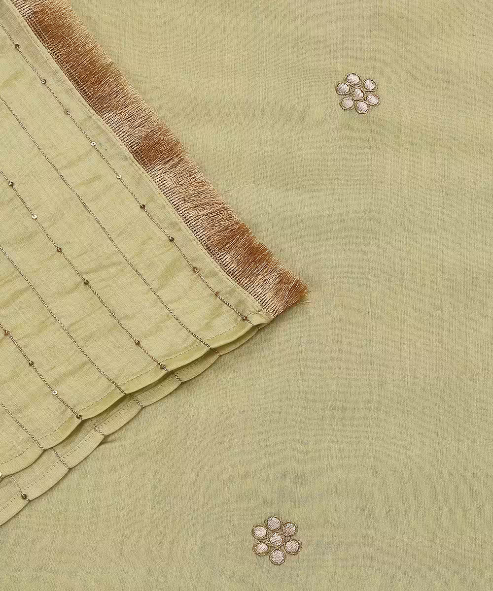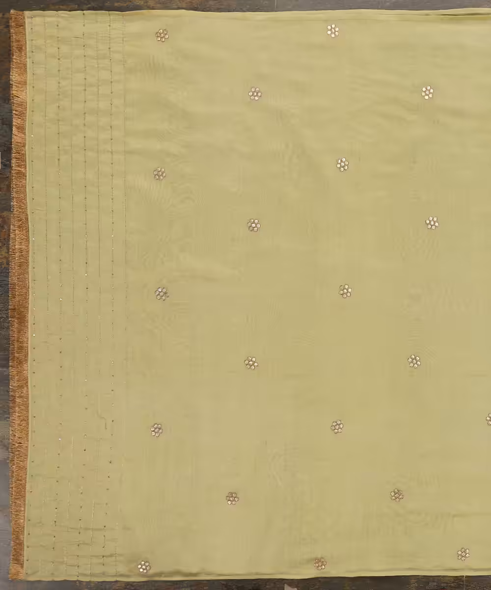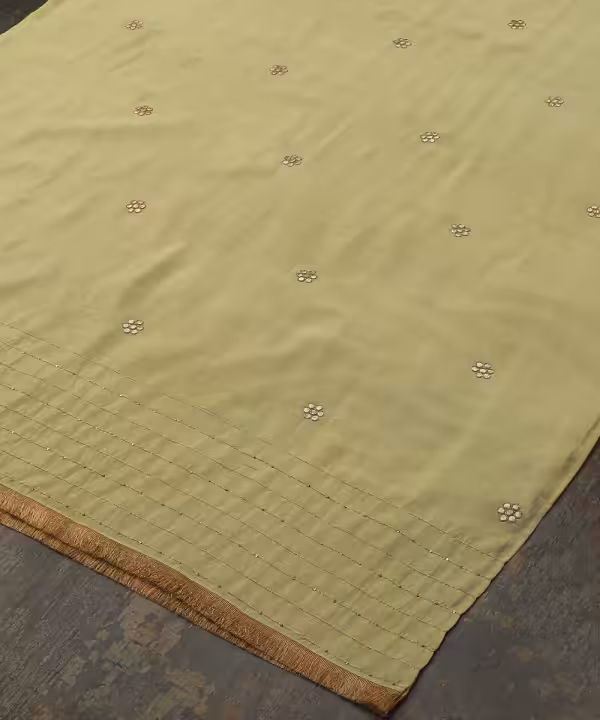 Lime Green Silk Dupatta with Gota Floral Booties and CoutureCraze Lace