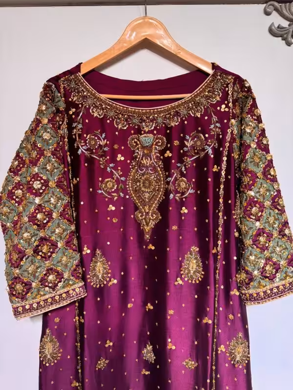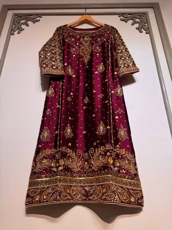 Key Features of the Luxury Maroon Handcrafted Ethnic Dress with Antique Embroidery