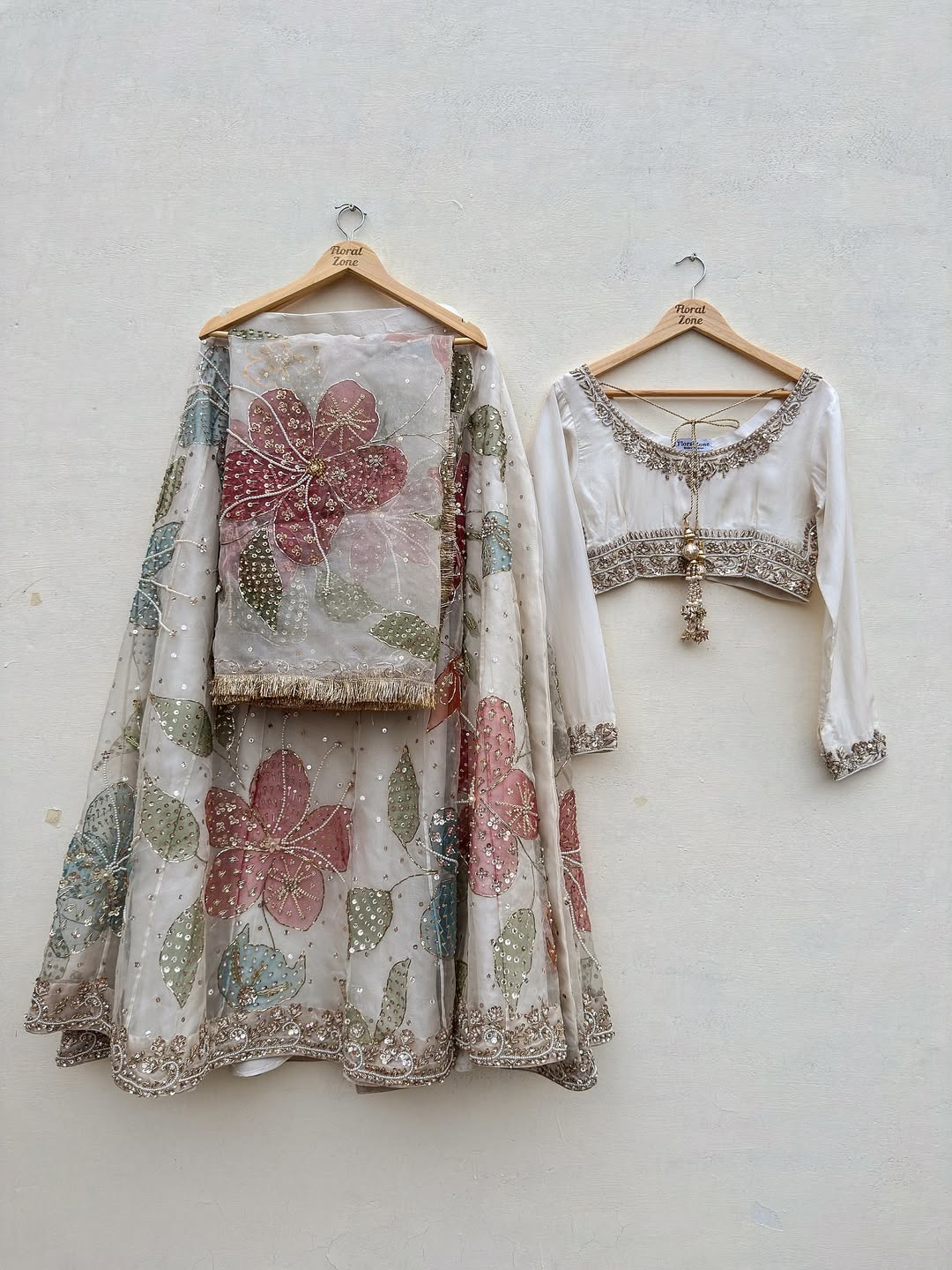 Luxury Pastel Floral Embroidered Lehenga Set | CoutureCraze 2025