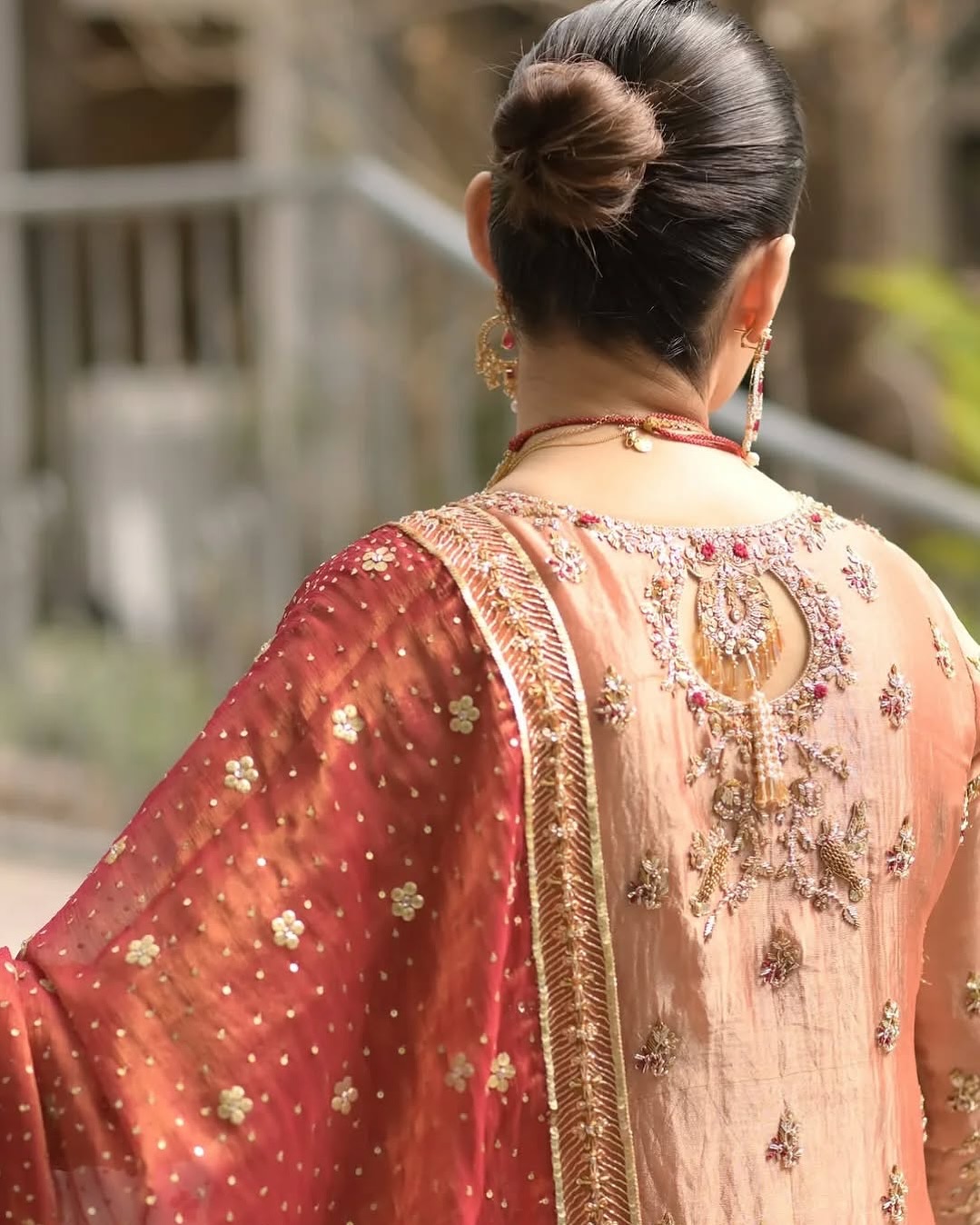 Details: Keyhole back, scalloped dupatta border, hem embroidery