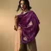 The Purple Mauve Hand-Embroidered Zardozi Silk Velvet Doshala with Contrast Chanderi Tissue Border is a refined and luxurious accessory. Made from rich silk velvet in a unique purple mauve shade, this doshala brings an air of sophistication to any ensemble, ideal for weddings and festive occasions.
