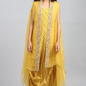 Yellow Embroidered Cowl Kurta With Cape