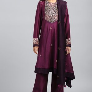 Purple Embroidered & Printed Kurta Set