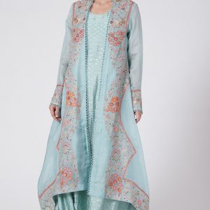 Powder Blue Embroidered Jacket Set