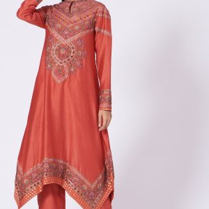 Deep Orange Embroidered Kurta Set