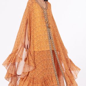 Orange Embroidered Kaftan Kurta Set