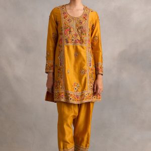 Yellow Kashmiri Embroidered Kurta Set