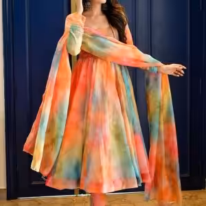 Aesthetic Blue Georgette Pant Style Suit with Patch Border, Embroidered and Swarovski Work