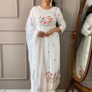 Especial Maroon Handloom Silk Pant Style Suit with Embroidered, Resham and Swarovski Work