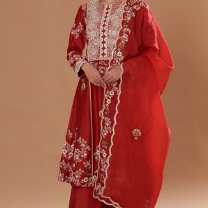 Red Chanderi Dori Embroidered Kurta Set