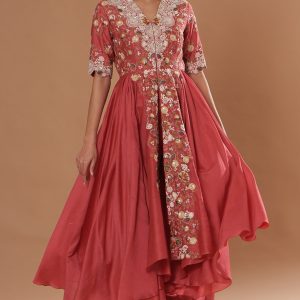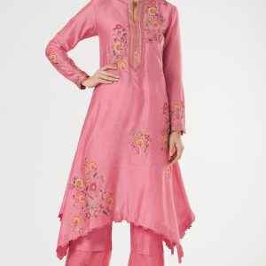 Pink Chanderi Asymmetrical Kurta Set