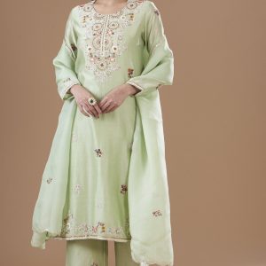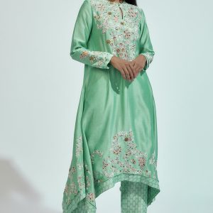 Mint Chanderi Silk Embroidered Kurta Set