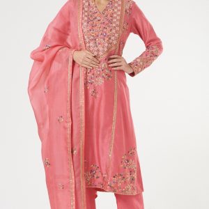 Pink Chanderi Kurta Set