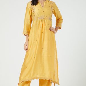 Yellow Chanderi Embroidered Kurta Set
